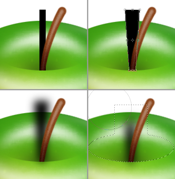 Create a new layer below the "Stalk" layer and name it "Stalk Shadow." Grab the Rectangular Marquee Tool and make a selection, as in the image below. Fill it with black and Deselect. Go to Edit > Transform > Perspective and tweak the perspective of the layer as shown.