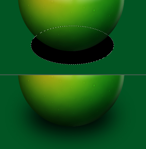 Create a new layer below the "Apple" group and name it "Shadow." Grab the Elliptical Marquee Tool and make a selection as shown, then fill it with black. Deselect and go to Filter > Blur > Gaussian Blur, and apply with a Radius of 40 pixels.