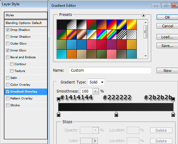 Apply the same style as we had to our navigation. For the identifier apply this gradient overlay: