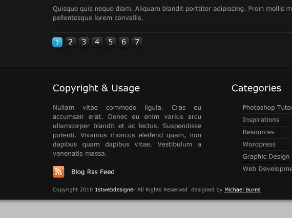 Select Rectangular Marquee Tool(M) and create a big Rectangle 40px under the pagination, fill it with #141414 color.