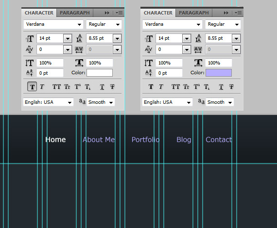 Create a folder inside header folder and name it to Navigation, put all your navigation related layers there. Now we are going to add the Navigation Links, so select the Text Tool(T) and write text the same ways as in the screenshot.