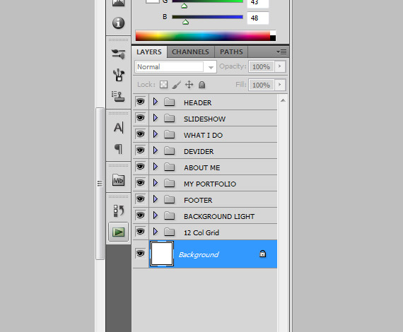 Using Paint Bucket Tool(G) fill the background layer to #242b30 Now you need to create a folders. Here is the folders that we will use in order to be organized. Implement this system in all of your designs – it will help a lot later when you will need to edit anything.