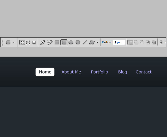 Now lets create the Active state styling for the home. Create a new layer below the home text, select Rounded Rectangle Tool(U) and set the radius to 5px.