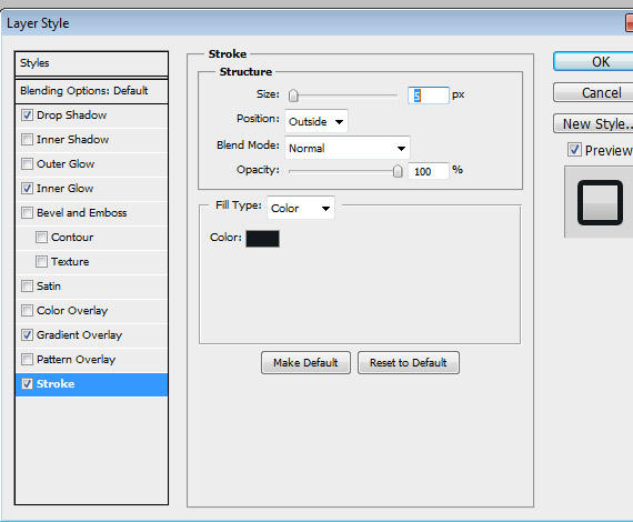 Now lets create a Previous and Next button. Create another folder inside slideshow folder and name it to prev_next. Select Rounded Rectangle Tool(U), radius to 5px. Place the shape as shown in the screenshot.