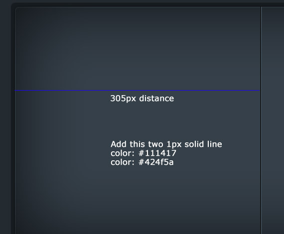 Select the Divider folder, inside of it create a new folder name it lines. We are going to make 2 1px line to make a divider and some blending options to make it more interesting. To make the line we can do this by the use of Line Tool(U), For the 1st line color will be #111417 and 2nd line #364148.