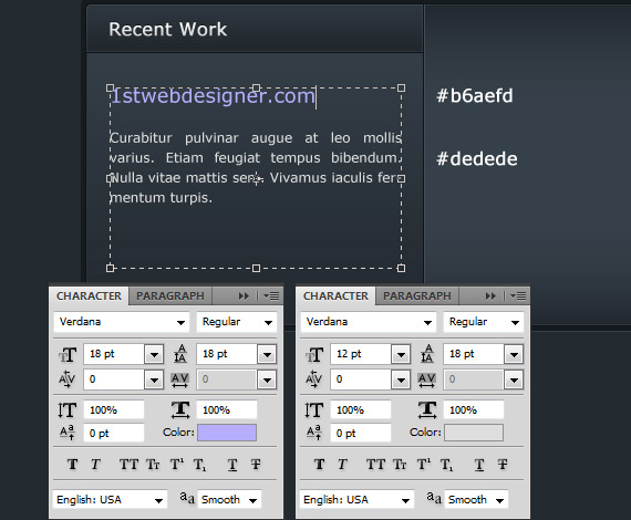 Now we are going to add the my portfolio information, so select the Text Tool(T) and write text the same ways as in the screenshot.