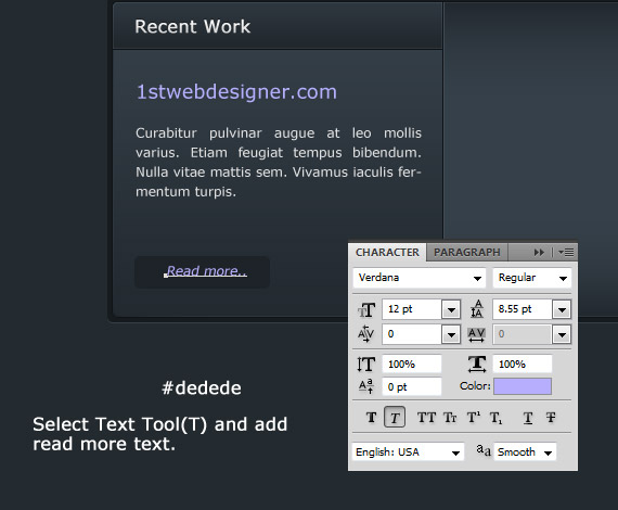 Now we are going to add the description text, so select the Text Tool(T) and write text the same ways as in the screenshot.