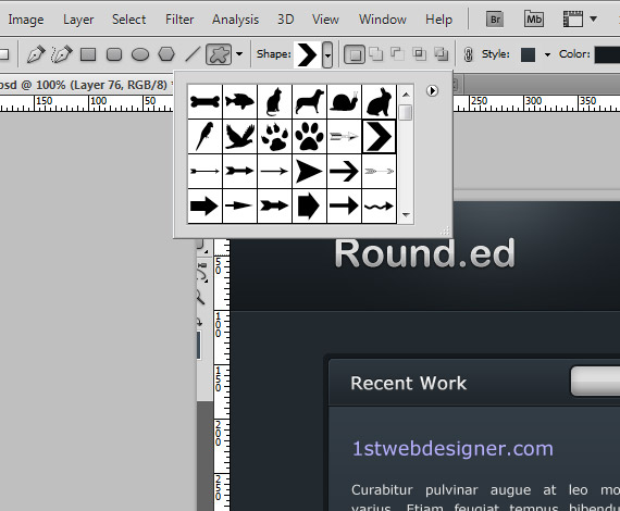 Now we will add the previous and next arrow. Select Custom Shape Tool(U), find the arrow as shown in the screenshot.
