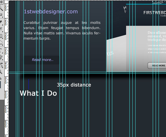 Before we get started,download at first 960grid system for easy Guideline creation. Open 960_download\templates\photoshop\960_grid_12_col.psd . We also need to make sure that our Rulers and Guides are viewed, you can do that by pressing