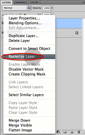 Great, once you have it we need to rasterize the layer and lock the content as shown below.