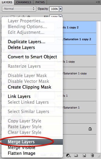 Now select all this new layers and duplicate them once again, only this time merge them together.