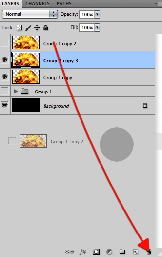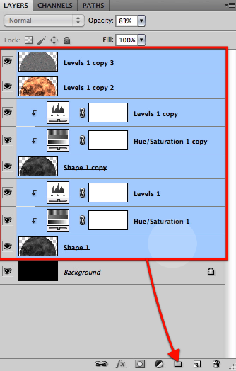 Now select all the layers we have created, including the original and drag them to the folder icon to quickly make a group of them. Once you have the group then duplicate the group as shown below.
