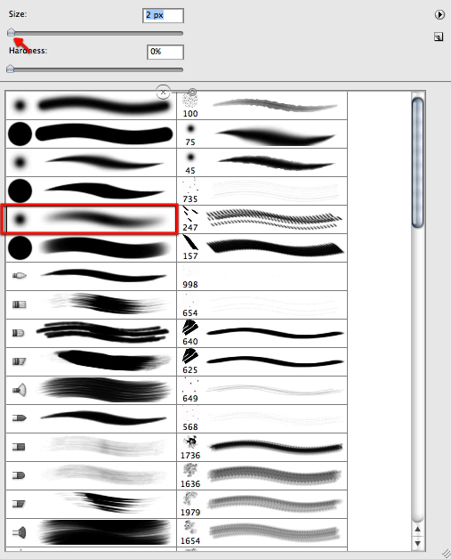 Scroll down the list of brushes and test this one too, if you are satisfied let’s move on.