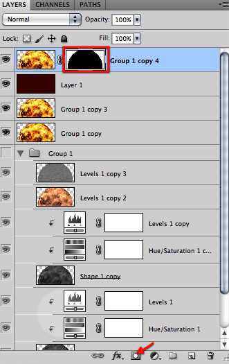 When you are done grab both layers and create a clipping mask so they only influence our suns surface