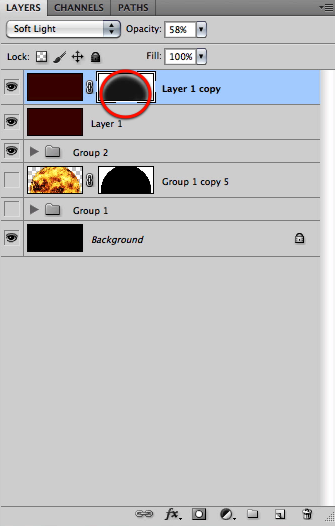 Now let’s open up our saved group and on the top layer thumbnail do a Command/Ctrl +click to get a quick selection of the circle of the original layer as shown below, without the wisps.