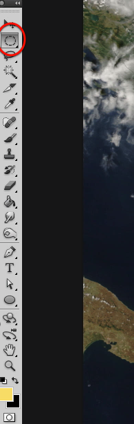 Then just use the circular selection tool and choose a big portion all the way to almost the border so we get many terrain features included.