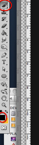 Here you see I selected the eraser with a big soft brush and below you can see the areas that needed erasing a bit so there will be no sharp edges in our resulting brush.