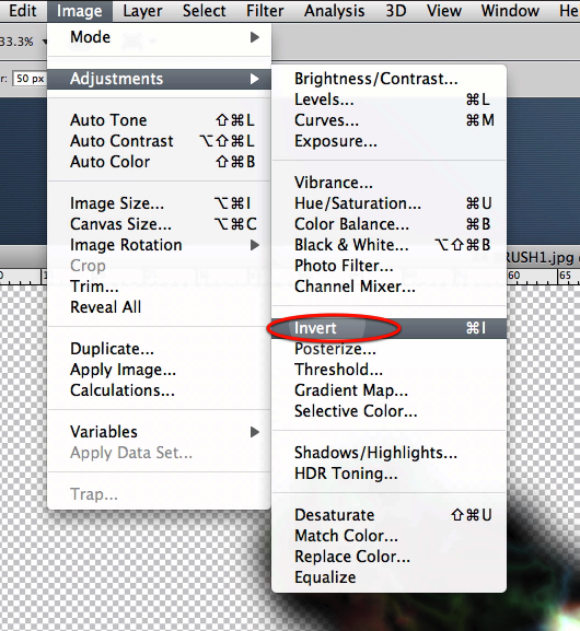 Perfect; next invert the image and erase any dark border softly with a big soft brush. Whatever you select to create a brush, black and gray tones will appear when you stamp your brush, and white means the opposite, nothing will appear.