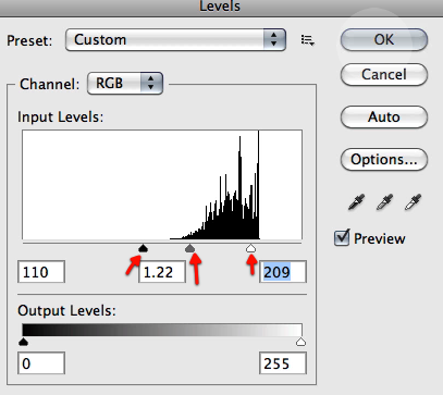 Nice that is much better now let’s adjust the levels a bit to get more contrast as shown below.