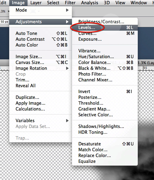 OK go ahead and repeat the process; copy and paste to a new layer, invert, scale it down, and in this case adjust the levels as shown here.