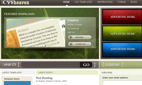 CSS Heaven - Free XHTML, HTML5 & CSS Templates